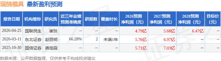 东吴证券股份有限公司黄细里,郭雨蒙近期对瑞鹄模具进行研究并发布了研究报告《2025年年报&2026年一季报点评:25年业绩稳中向上,设备业务在手订单充沛》,给予瑞鹄模具买入评级。