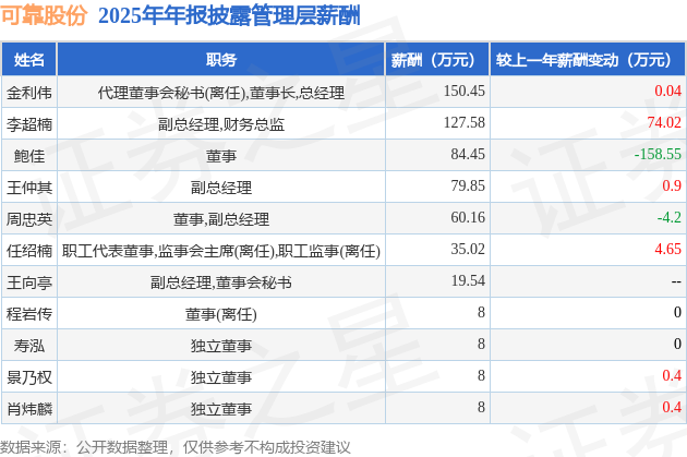 证券之星消息,可靠股份发布2025年年报,数据显示:公司主营收入11.5亿元,同比增6.65%。归母净利润为3611.87万元,同比增15.87%。扣非净利润为2817.53万元,同比增17.06%。当年公司员工总数756人,同比增12.17%。人均薪酬17.97万元(注:"人均薪酬"根据定期报告中"应付职工薪酬"附注的本期增加值 / 员工总数计算而来),同比增12.75%。人均创收152.15万元,同比减4.92%。人均创利4.93万元,同比增8.69%。其中管理层薪酬总额为589.05万元,同比上一年减23.11%,薪酬最高的为代理董事会秘书(离任),董事长,总经理金利伟,薪酬150.45万元。