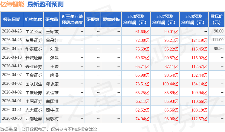 最新盈利预测明细如下: