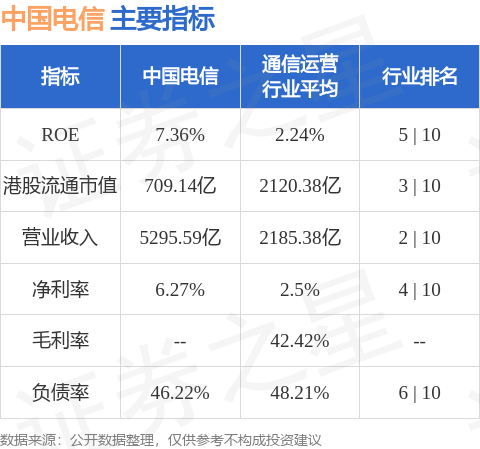 中国电信港股市值709.14亿港元,在通信运营行业中排名第3。主要指标见下表: