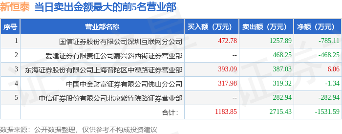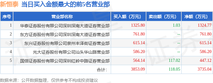 证券之星消息,沪深交易所2026年4月27日公布的交易公开信息显示,新恒泰(920028)因当日换手率达到20%的前5只股票登上龙虎榜。此次是近5个交易日内第1次上榜。