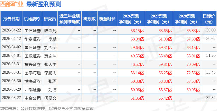 西部矿业2025年年报显示,当年度公司主营收入616.87亿元,同比上升23.31%;归母净利润36.43亿元,同比上升24.26%;扣非净利润36.18亿元,同比上升22.77%;其中2025年第四季度,公司单季度主营收入132.44亿元,同比下降0.42%;单季度归母净利润6.97亿元,同比上升250.08%;单季度扣非净利润7.19亿元,同比上升296.73%;负债率57.5%,投资收益-5.94亿元,财务费用6.09亿元,毛利率19.57%。