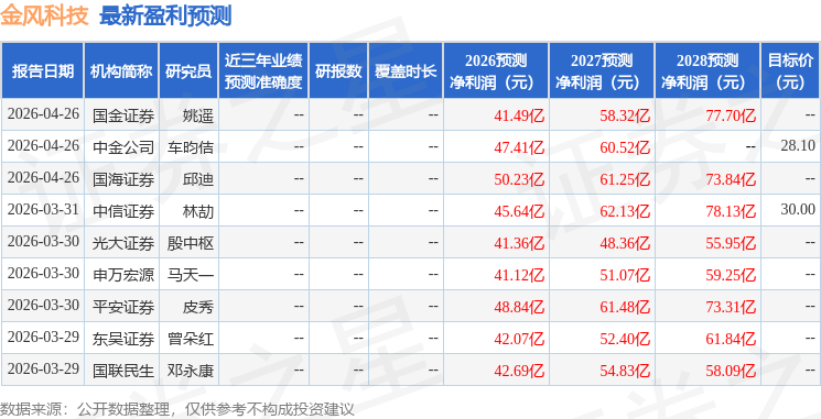 证券之星消息,2026年4月27日金风科技(002202)发布公告称公司于2026年4月27日召开业绩说明会,长江证券司鸿历、国海证券吴亦辰、中信证券林劼、天风证券杨志芳、中信建投陈思同、东吴证券胡隽颖、华创证券吴含、花旗银行刘显达、华泰证券宫宇博、汇丰银行许冰莹、华福证券万伟参与。