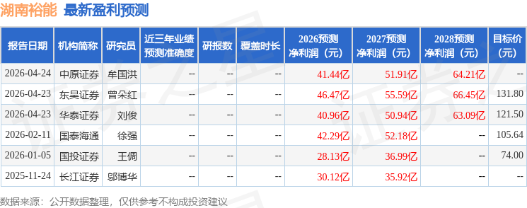 东吴证券股份有限公司曾朵红,阮巧燕,岳斯瑶近期对湖南裕能进行研究并发布了研究报告《2026年一季报点评:Q1盈利绩拐点明确,业绩超市场预期》,上调湖南裕能目标价至143.4元,给予买入评级。