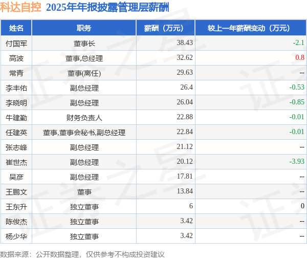 证券之星消息,科达自控发布2025年年报,数据显示:公司主营收入2.89亿元,同比减33.41%。归母净利润为-9011.59万元,同比减361.12%。扣非净利润为-9435.7万元,同比减493.34%。当年公司员工总数633人,同比减1.56%。人均薪酬12.83万元(注:"人均薪酬"根据定期报告中"应付职工薪酬"附注的本期增加值 / 员工总数计算而来),同比增10.28%。人均创收45.62万元,同比减32.36%。其中管理层薪酬总额为284.57万元,同比上一年减6.22%,薪酬最高的为董事长付国军,薪酬38.43万元。
