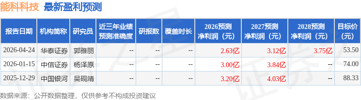 最新盈利预测明细如下: