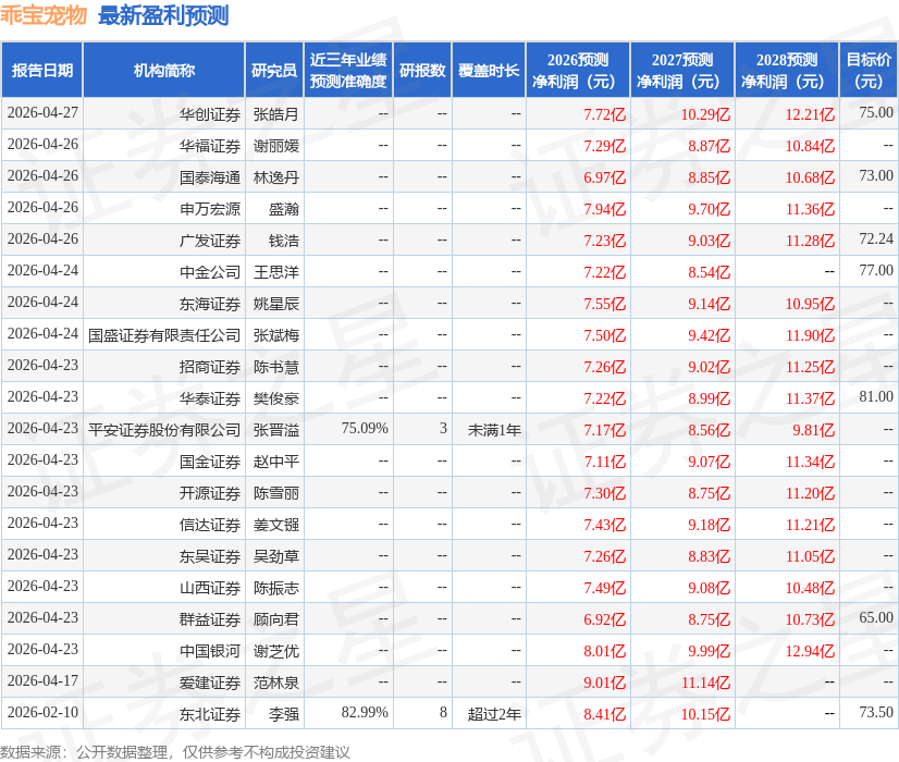 证券之星消息,2026年4月28日乖宝宠物(301498)发布公告称公司于2026年4月27日进行路演,中金公司王思洋 陈泰屹、Taikang InsuranceJoe Won Orchid Y、Cephei InvestmentPei Yinyi Wang Wei、China Alpha FundJames Wang Steven Teng、Point72Wang Yifei Scott Hong Alaia Xu Megan Wang、Yuanbao Family OfficeWei Zhang、FidelityAlex Dong参与。