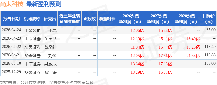 以下是详细的盈利预测信息: