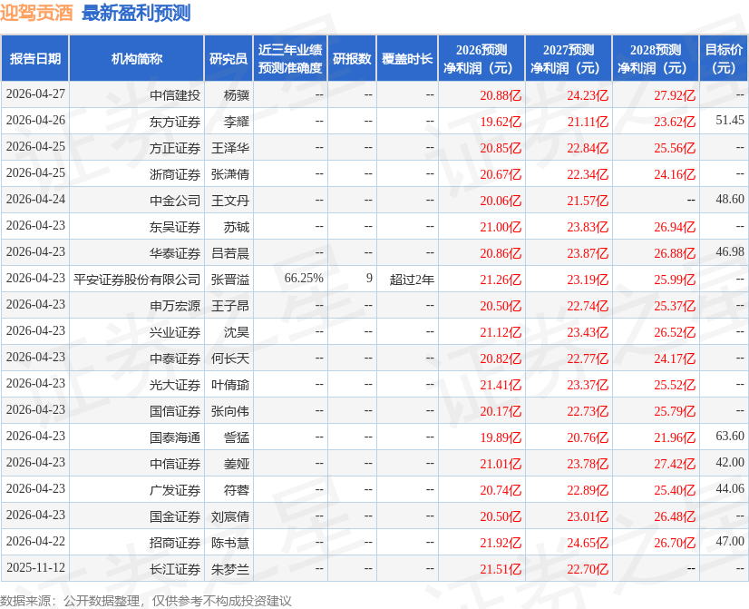 西南证券股份有限公司朱会振,舒尚立近期对迎驾贡酒进行研究并发布了研究报告《26Q1春节错峰和洞藏放量带动恢复增长》,给予迎驾贡酒买入评级,目标价54.0元。