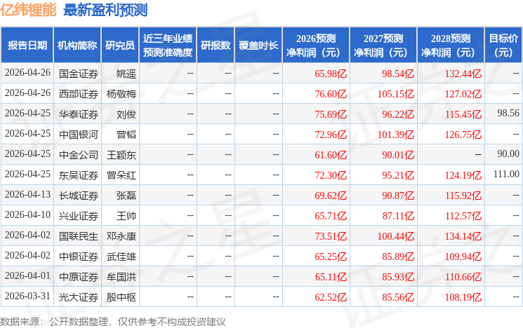 交银国际证券有限公司陈庆,李柳晓近期对亿纬锂能进行研究并发布了研究报告《看好盈利能力逐季修复,产能逐步释放支撑收入增长;维持买入》,上调亿纬锂能目标价至94.74元,给予买入评级。