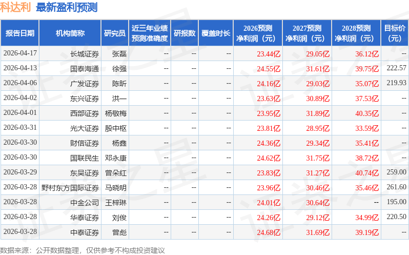 最新盈利预测明细如下: