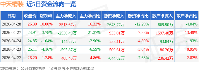 4月28日的资金流向数据方面,主力资金净流入3513.67万元,占总成交额16.33%,游资资金净流出2643.77万元,占总成交额12.29%,散户资金净流出869.9万元,占总成交额4.04%。