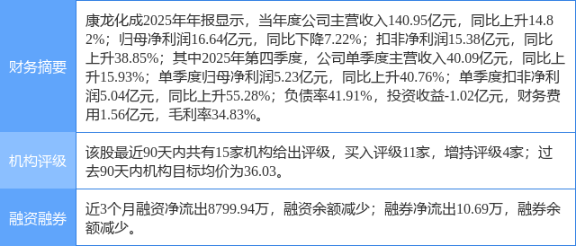 2026年4月2日,开源证券研究员余汝意发布了对康龙化成的研报《公司信息更新报告:营收稳健增长,新签大订单助力长期发展》,该研报对康龙化成给出“买入”评级。研报中预计2026-2028年公司归母净利润为22.13/29.34/37.65亿元(原22.74/27.82亿元),EPS为1.20/1.60/2.05元,当前股价对应PE为22.2/16.8/13.1倍,维持“买入”评级。证券之星数据中心根据近三年发布的研报数据计算,该研报作者对此股的盈利预测准确度为75.76%。