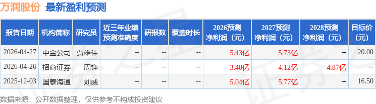 最新盈利预测明细如下: