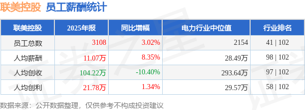 证券之星消息,4月29日联美控股公布2025年年报,当年营收32.39亿元,同比减7.7%;净利润为6.86亿元,同比增4.09%。根据财报数据披露,当年公司员工总数3108人,同比增3.02%;人均薪酬11.07万元,同比增8.35%;人均创收104.22万元,同比减10.4%;人均创利21.78万元,同比增1.34%;公司员工薪酬统计见下表:
