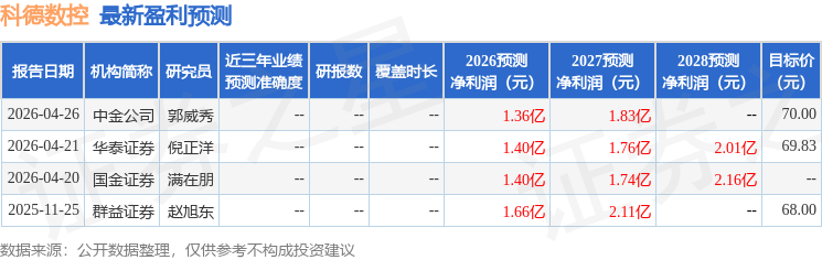 最新盈利预测明细如下: