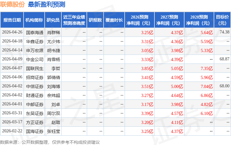 最新盈利预测明细如下: