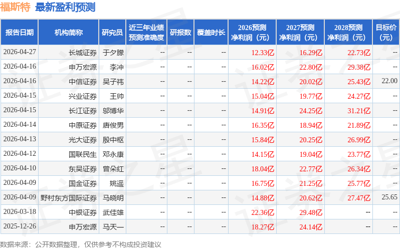 最新盈利预测明细如下: