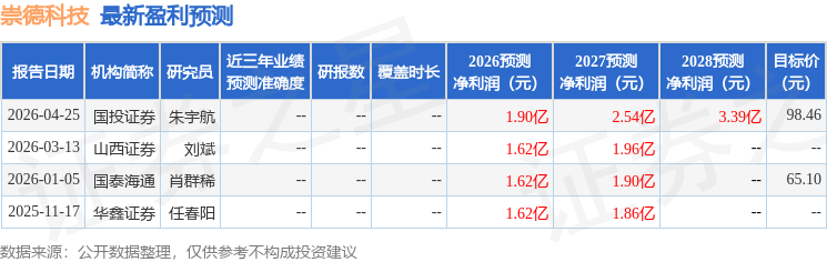 证券之星消息,2026年4月28日崇德科技(301548)发布公告称广发证券王宁 苏红毅、泰康资产张厚喆 李帛洋于2026年4月27日调研我司。