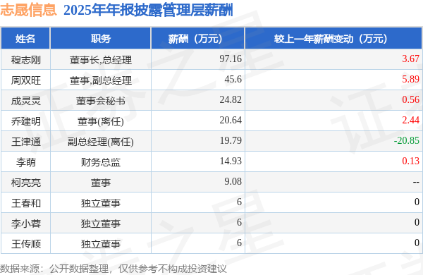 证券之星消息,志晟信息发布2025年年报,数据显示:公司主营收入2.42亿元,同比增58.67%。归母净利润为490.7万元,同比增106.45%。扣非净利润为-227.93万元,同比增96.66%。当年公司员工总数248人,同比减17.33%。人均薪酬15.02万元(注:"人均薪酬"根据定期报告中"应付职工薪酬"附注的本期增加值 / 员工总数计算而来),同比减2.75%。人均创收97.41万元,同比增91.94%。人均创利3.35万元,同比增113.23%。其中管理层薪酬总额为250.02万元,同比上一年减24.88%,薪酬最高的为董事长,总经理穆志刚,薪酬97.16万元。