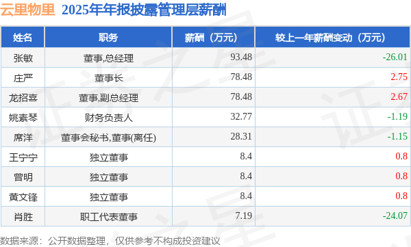 证券之星消息,云里物里发布2025年年报,数据显示:公司主营收入2.46亿元,同比增24.3%。归母净利润为1545.98万元,同比减31.18%。扣非净利润为1365.47万元,同比减32.97%。当年公司员工总数542人,同比增17.32%。人均薪酬16.35万元(注:"人均薪酬"根据定期报告中"应付职工薪酬"附注的本期增加值 / 员工总数计算而来),同比增0.94%。人均创收45.32万元,同比增5.95%。人均创利2.85万元,同比减41.34%。其中管理层薪酬总额为343.91万元,同比上一年减22.05%,薪酬最高的为董事,总经理张敏,薪酬93.48万元。