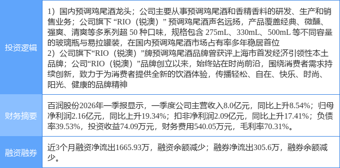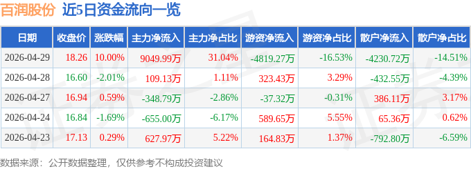 证券之星消息,百润股份4月29日涨停收盘,收盘价18.26元。该股于9点30分涨停,4次打开涨停,截止收盘封单资金为2769.94万元,占其流通市值0.2%。