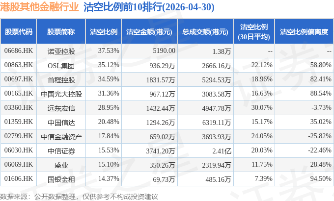 从沽空比例来看,诺亚控股、OSL集团、首程控股沽空比例位居行业前三,分别为37.53%、35.12%、34.59%。
