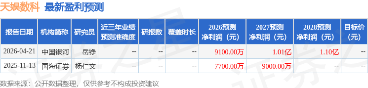 太平洋证券股份有限公司郑磊,李林卉近期对天娱数科进行研究并发布了研究报告《2026Q1业绩同比高增,AI业务平台及全球化战略稳步推进》,给予天娱数科增持评级。