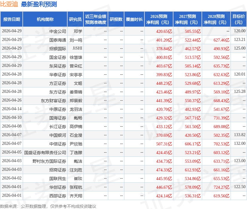 最新盈利预测明细如下: