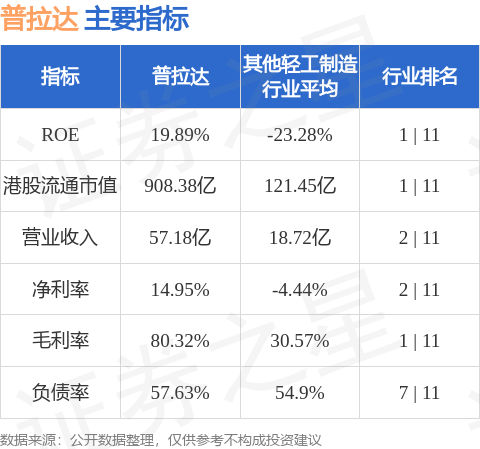 普拉达港股市值908.38亿港元,在其他轻工制造行业中排名第1。主要指标见下表: