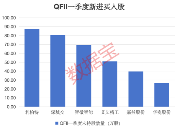 数据宝统计,上述50只个股中,深城交、嘉益股份、智微智能、利柏特、华瓷股份、艾艾精工6股今年一季度获QFII新进买入。其中深城交、智微智能年内还获北上资金新进买入,分别净买入43.56万股、178.5万股。