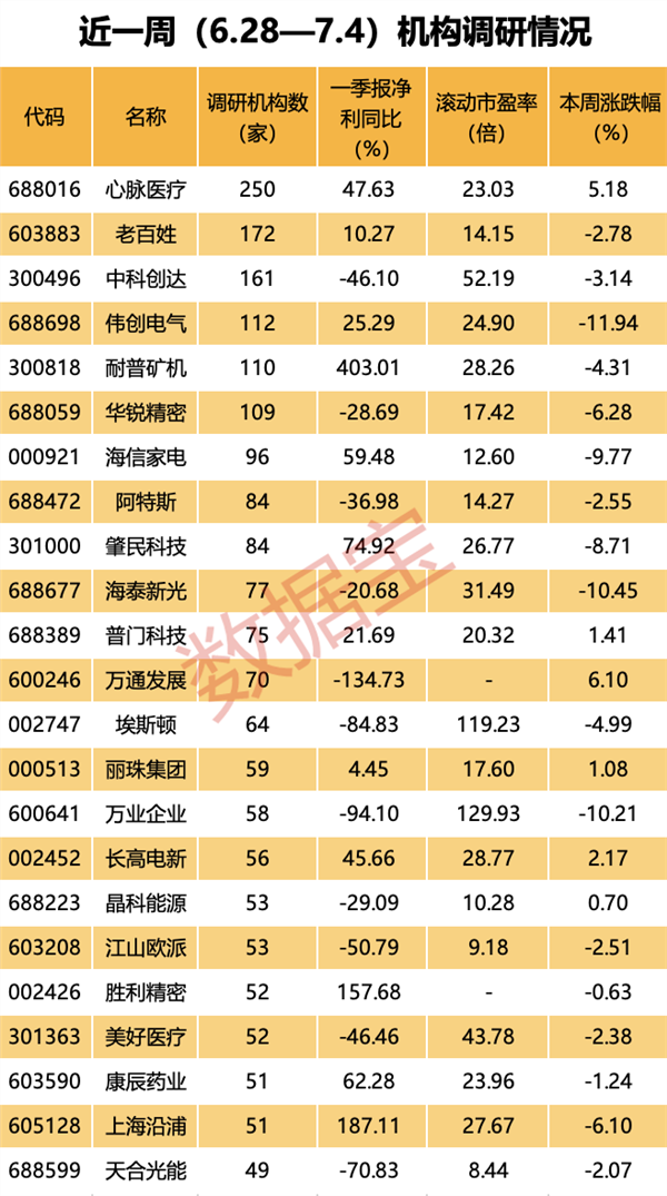 近一周机构调研个股数量有270多只,心脉医疗成为调研机构数量最多的股票。