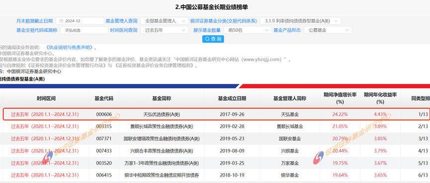 对纯债感兴趣的伙伴,可上支付宝APP搜索:天弘优选债券A(000606),根据2024年产品年度报告,天弘优选债券A在过去一年收益率9.59%,中长期表现也非常突出,过去五年在利率纯债类基金中排名top1。(过去五年同类排名top1排名数据来源:银河证券,同类基金是指银河三级分类3.1.9,利率纯债债券型基金(A类),截至2024/12/31)