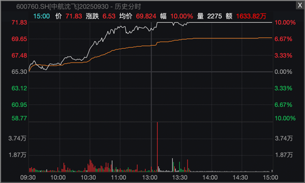 市场热点方面,国防军工股今日全线走强,航空装备方向领涨,板块指数放量大涨逾4%。北摩高科在临近收盘最后不到半小时涨停,中航沈飞亦在午后强势封板,华秦科技、航天彩虹、洪都航空等涨幅居前。