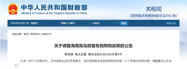 10月17日,财政部、海关总署、税务总局联合印发公告,调整海南离岛旅客免税购物政策,并定于11月1日起实施。