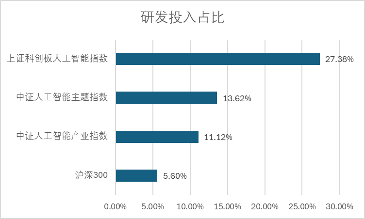 表:上证科创板人工智能指数与市场其他指数成分股研发投入占比(来源:中证指数公司,Wind,截止至2025.10.22,以上不作为个股推荐,亦不构成任何投资建议。)