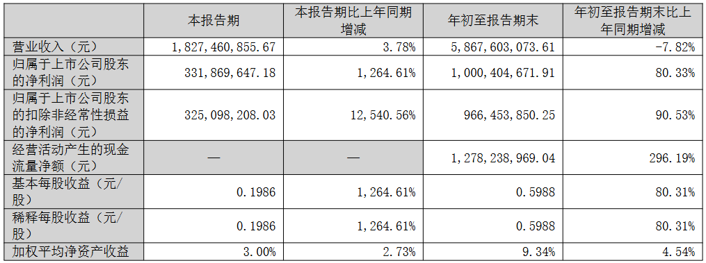 10月27日,以岭药业(002603)正式披露2025年第三季度报告,交出一份“含金量十足”的成绩单。财报数据显示,公司第三季度实现营业收入18.27亿元,同比增长3.78%;归母净利润达3.32亿元,同比激增1264.61%,创下单季历史新高;扣非归母净利润3.25亿元,同比增幅高达12540.56%,显示公司主营业务盈利能力实现跨越式提升。