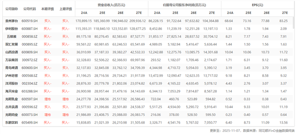 据财联社,11月6日,中信证券研报认为,受到内需消费恢复缓慢、政商务相关宴请政策收紧的影响,2025年以来白酒板块股价表现疲软严重跑输指数,年初至2025年10月31日,中信白酒指数-4.6%,分别跑输沪深300、万得全A指数22.5pcts 、30.9pcts。虽然短期内白酒行业基本面仍继续承压,但考虑到大部分上市酒企已开始逐步出清,研报判断2025年下半年是本轮白酒行业的基本面底部,是动销最弱、批价最低、市场预期最低、上市公司报表业绩下滑斜率最大的阶段。此外,研报也判断2026年板块将出现一定企稳回升。再考虑到未来需求逐步复苏趋势明确,看好白酒行业底部配置机会。啤酒方面,综合考虑非即饮渠道占比持续提升、消费者需求碎片化以及消费弱复苏等因素,判断2026年啤酒行业收入和利润将保持持平微降,看好份额提升快、渠道管理强、产品势能好的企业。
