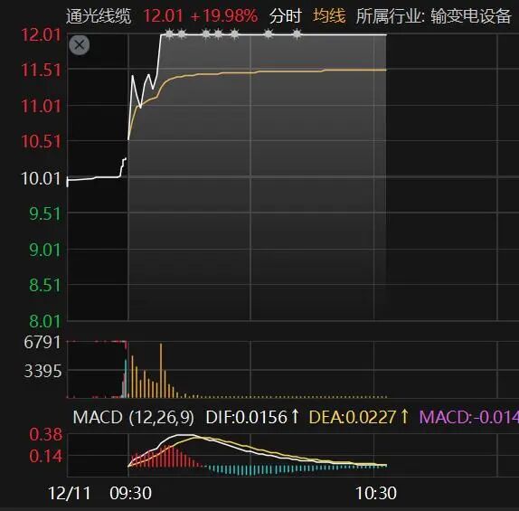 电网设备板块拉升,通光线缆“20cm”涨停,汉缆股份、中超控股等涨停。