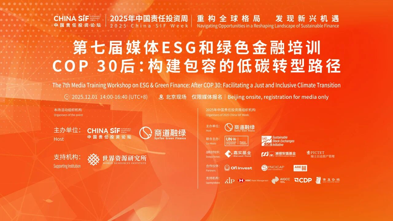 2025年12月1日下午,2025年中国责任投资周(2025 China SIF Week)系列活动:第七届媒体ESG和绿色金融培训顺利举行。