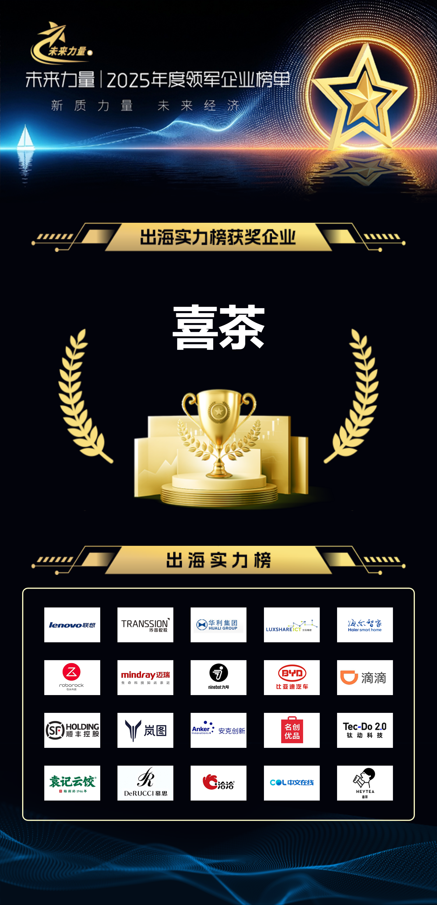 12月31日,证券之星发布2025年“未来力量”领军企业榜单,喜茶凭借在海外市场卓越的拓展能力、产品创新与品牌建设,成功入选“出海实力榜”,成为新茶饮行业国际化发展的标杆企业。