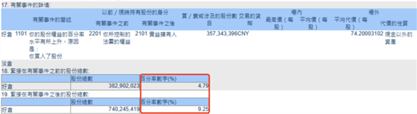 本次权益变动前,国家集成电路基金通过其一致行动人鑫芯(香港)投资有限公司间接持有中芯国际约3.83亿股港股股份,占比4.79%。交易完成后,国家集成电路基金及其一致行动人合计持股将增至约7.40亿股。