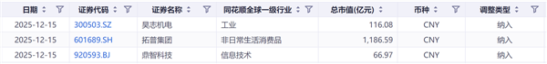 图:中证机器人指数新纳入的成分股(来源:中证指数公司,iFind,数据截止2025年1月6日)