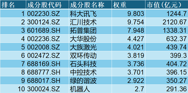 表:中证机器人指数前十大成分股(来源:中证指数公司,iFind,数据截止2025年1月6日)