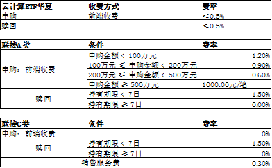 注:以上所提及ETF均不收取申购费、赎回费、销售服务费,申购赎回代理机构可按照不超过0.5%的标准收取佣金,其中包含证券交易所、登记结算机构等收取的相关费用;此外,相关ETF及联接的管理费率和托管费率如下所示: