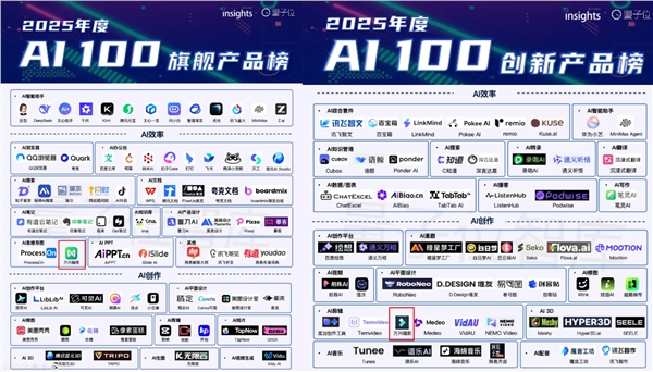 近日,量子位智库“2025年度AI 100”产品榜单正式揭晓。AIGC软件A股上市公司万兴科技(300624.SZ)产品创新力再获行业认可,旗下绘图创意产品万兴脑图入选代表国内最强综合实力的“AI 100旗舰产品榜”,视频创意产品万兴喵影入选最具成长潜力的“AI 100创新产品榜”,展现出其在AI办公提效与内容生产领域的持续创新能力与产业赋能价值。