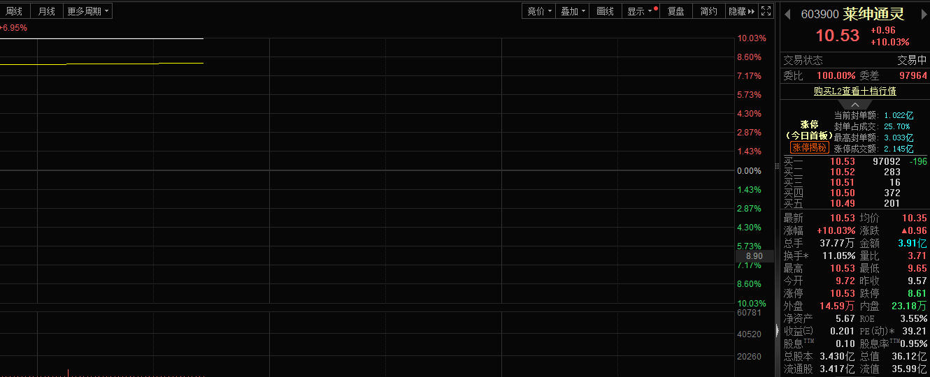 1月28日,黄金概念股纷纷大涨。其中,莱绅通灵(603900)股价实现涨停。