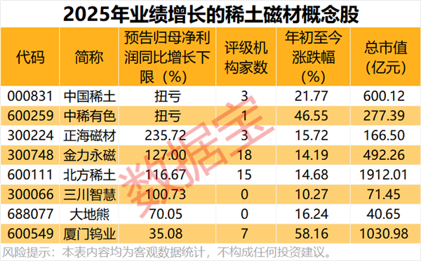 稀土磁材概念股业绩大增