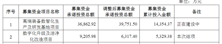 据悉,高端装备数智化生产及研发基地项目规划的一车间于2024年1月完成建设并投入生产运营。募投规划的二车间和另一募投项目氢能及特材研发中心建设项目进行整体规划打造,但受宏观经济环境的复杂变化及下游行业投资周期波动等影响,进度未达预期。