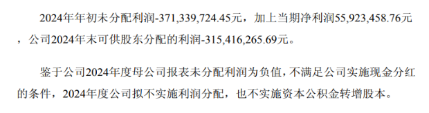 例如,受前期会计差错更正影响,2020年至2022年,苏豪时尚母公司报表未分配利润由更正前的盈利,转变为更正后的负值。2023年、2024年,公司期末未分配利润分别为-3.71亿元和-3.15亿元,由于连续两年母公司报表未分配利润为负值,不满足公司实施现金分红的条件,公司均未实施利润分配。截至2025年上半年末,公司母公司报表未分配利润为-2.99亿元。